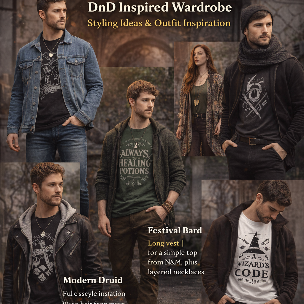 Mixing fantasy flair with everyday style is easier than you think. A DND-inspired wardrobe isn’t about full-on costume; it’s about weaving subtle nods to Dungeons & Dragons into your modern outfits. The result is an authentic, wearable look that fans will appreciate without screaming “cosplay”.